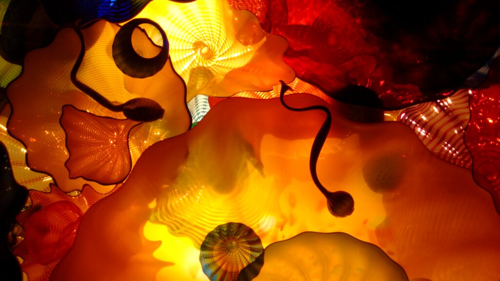 오늘은 시애틀의 다양한 공간들을 찾아가 보았다. 먼저 뮤직 익스피리언스 뮤지엄에서 너바나와 지미핸드릭스, 사운드가든, 펄잼 등.. 내가 좋아하는 전설적인 시애틀 출신의 전시를 보았다. 바로 옆에 위치한 치훌리 가든 앤 글라스에선 빅토리아 앨버트 뮤지엄에서 처음 보았던 그 화려한 유리 예술이, 압도적인 작품의 양 때문인지, 웅장하고 생생하게 다가왔다.