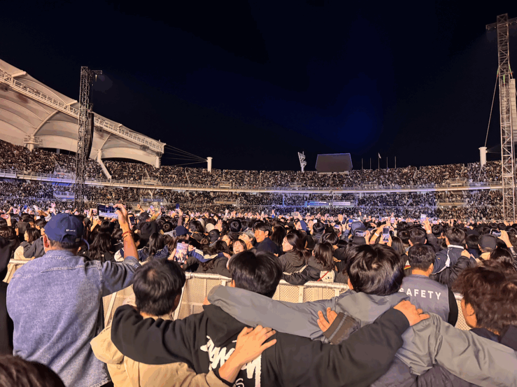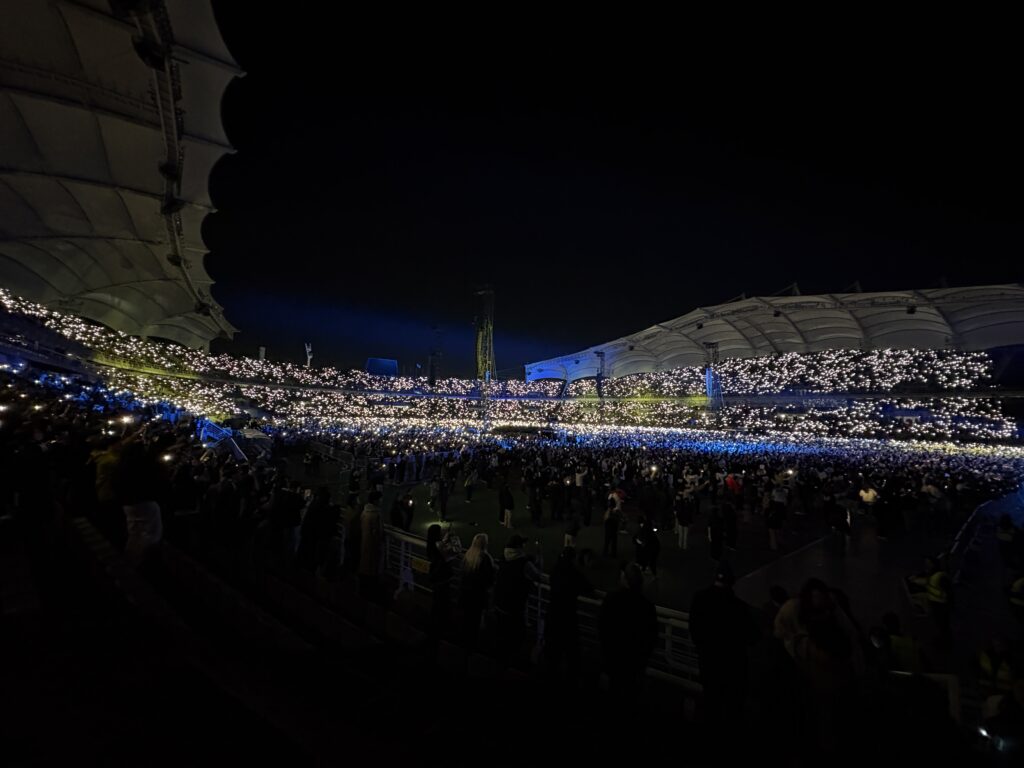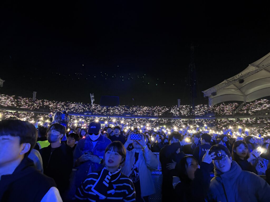 코엑스 광고가 뜬 지 며칠 후, 공연 티켓팅에 성공했다. 그리고 1년이 지난 지금, 드디어 공연을 보러 가게 되었다. 여름에 수술을 하고 호르몬 치료까지 이어지며 컨디션이 좋지 않은 상태라 걱정이 한가득이었지만, 그렇다고 공연을 못 갈 거라는 생각은 한 번도 해보지 않았다. VIP존을 선택한 건 vip굿즈 + 빨리 입장해 뒷 펜스를 선점할 욕심 때문이었는데, 입장 시간이 너무 빨랐다. 결국 공연 직전에 들어갔고, 나와 비슷한 연령대의 사람들은 이미 펜스를 점령한 뒤였다. 그래서 우리는 적당히 널널한 자리에서 공연을 보기로 했다.